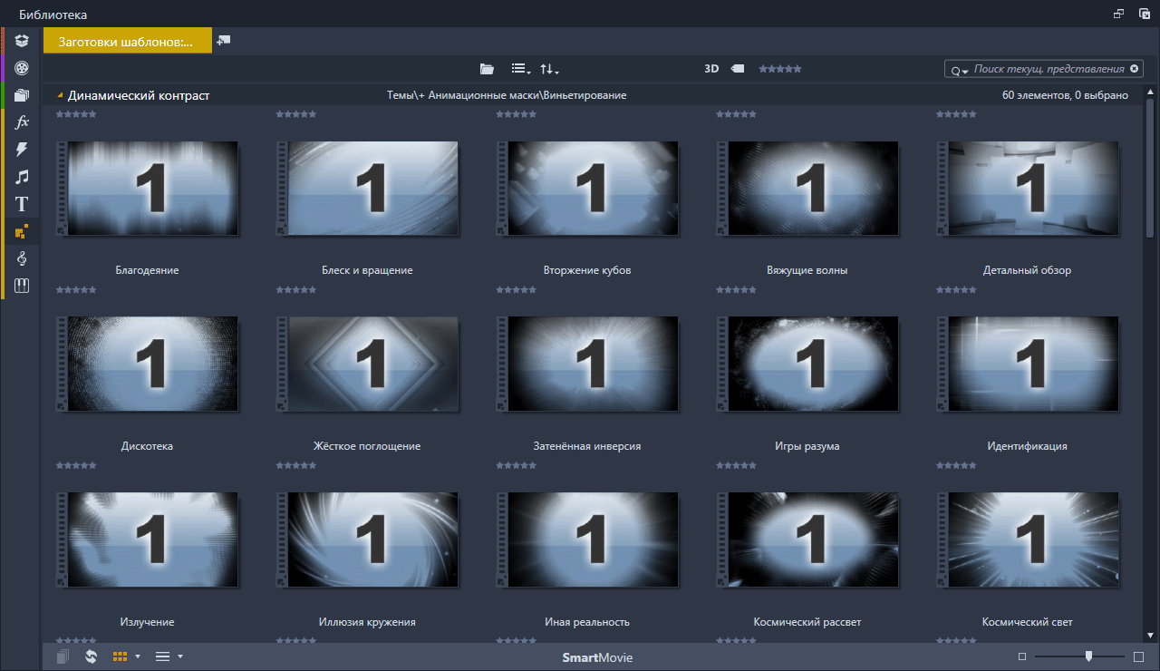 Анимационные маски (Vignettes Dynamic Contrast) Набор анимированных масок подключённых в Pinnacle Studio с помощью тем монтажа. Скриншоты