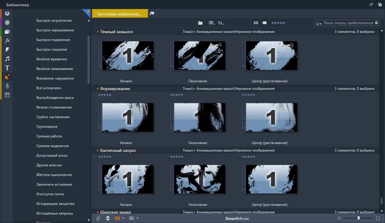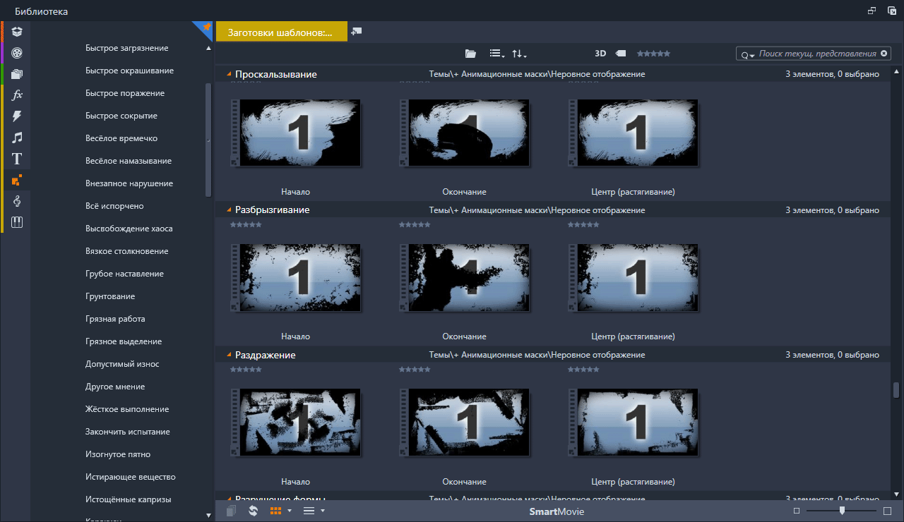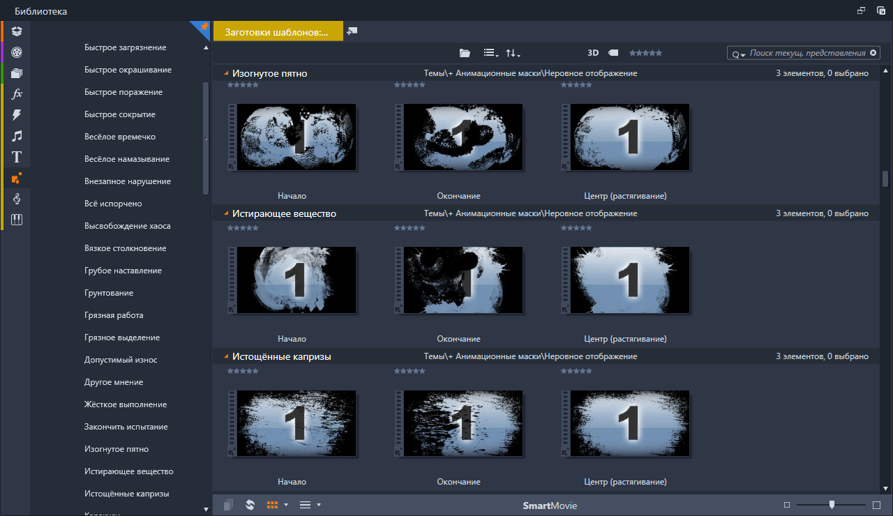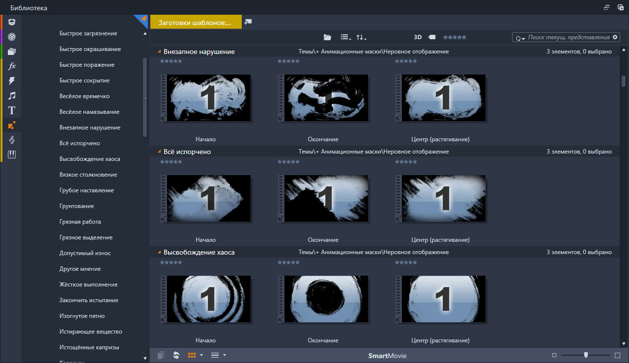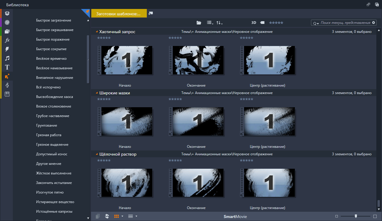 Анимационные маски (Rough Reveals) Набор анимированных масок подключённых в Pinnacle Studio с помощью тем монтажа. Скриншоты