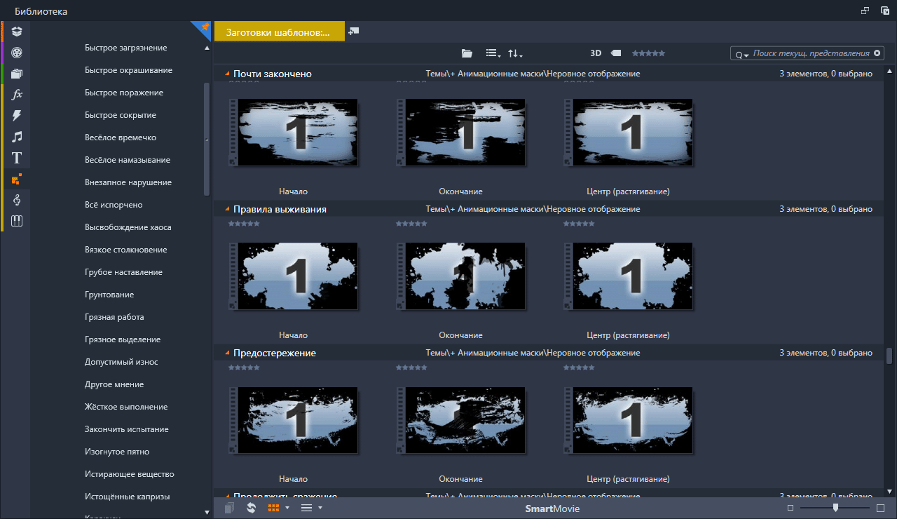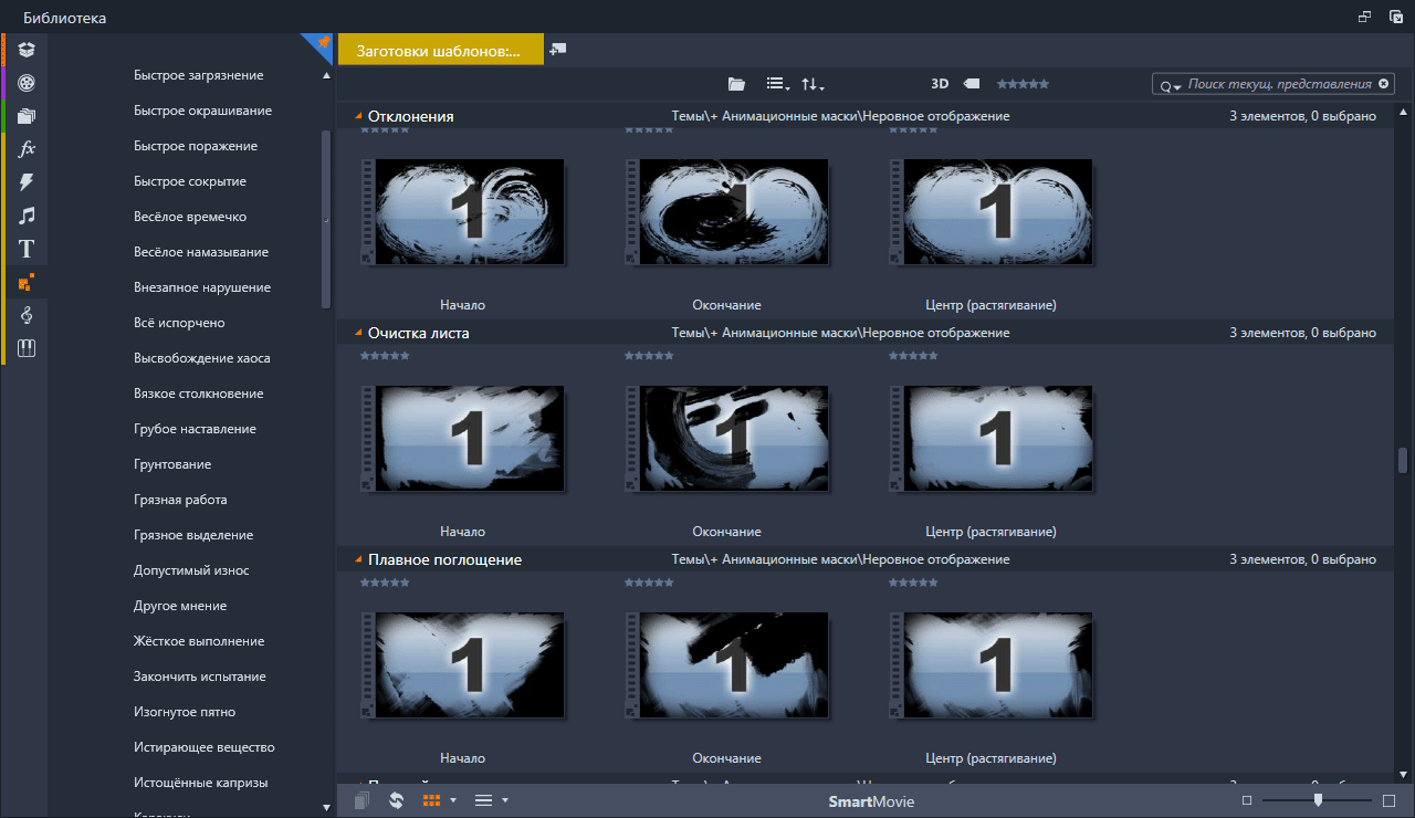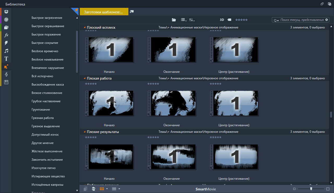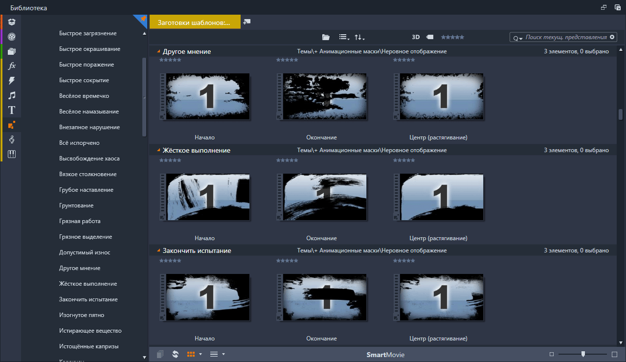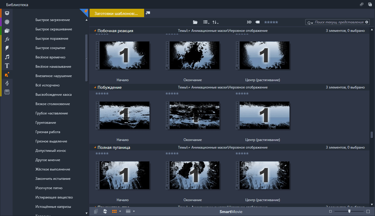 Анимационные маски (Rough Reveals) Набор анимированных масок подключённых в Pinnacle Studio с помощью тем монтажа. Скриншоты