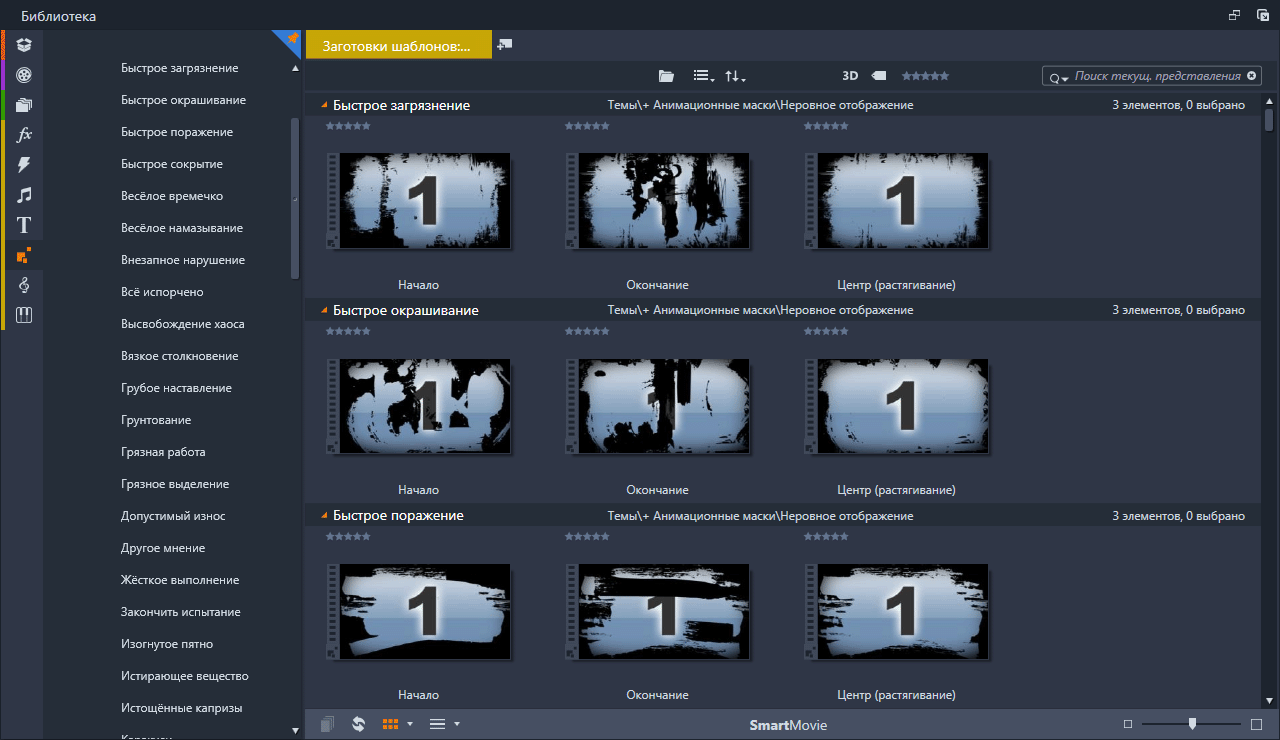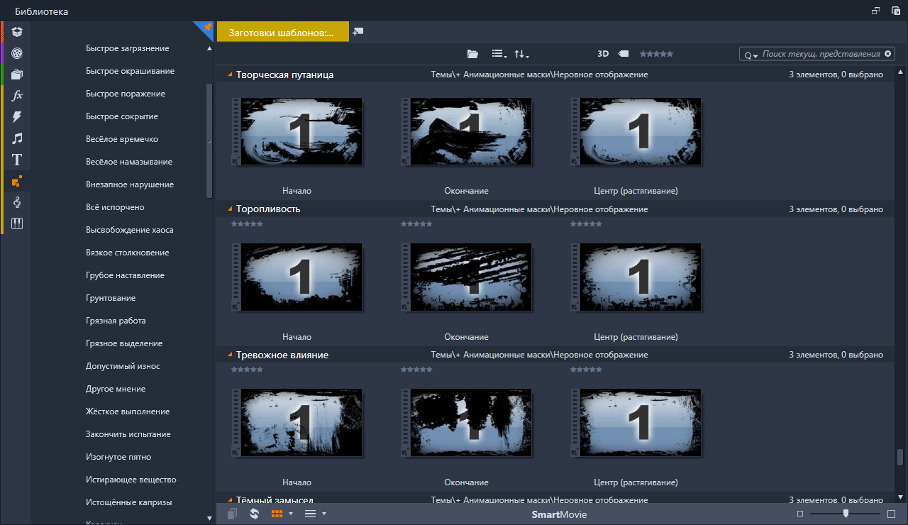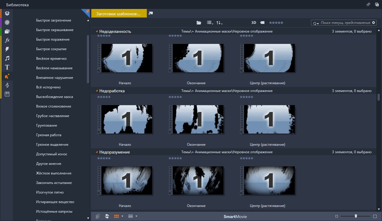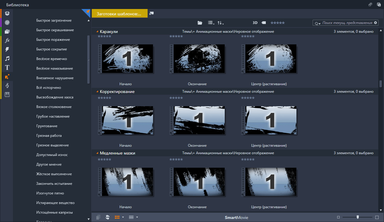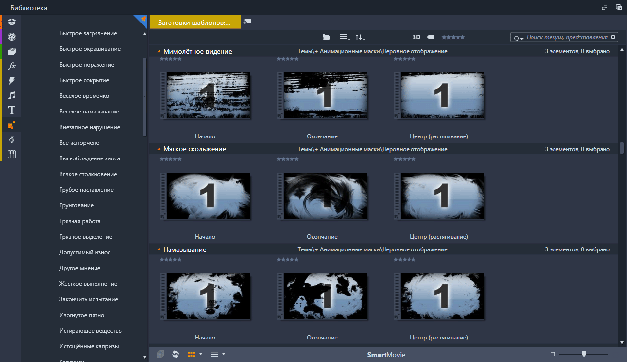Анимационные маски (Rough Reveals) Набор анимированных масок подключённых в Pinnacle Studio с помощью тем монтажа. Скриншоты