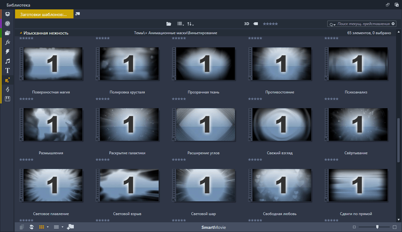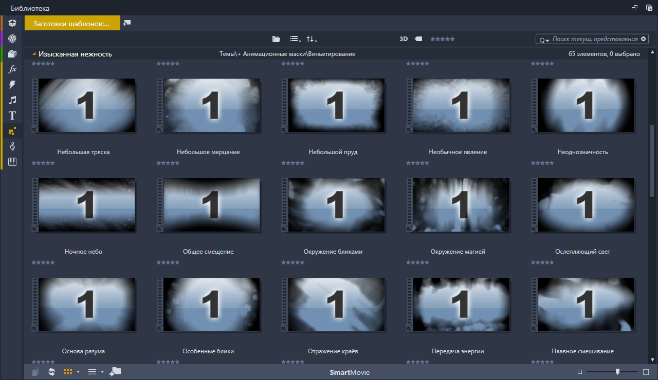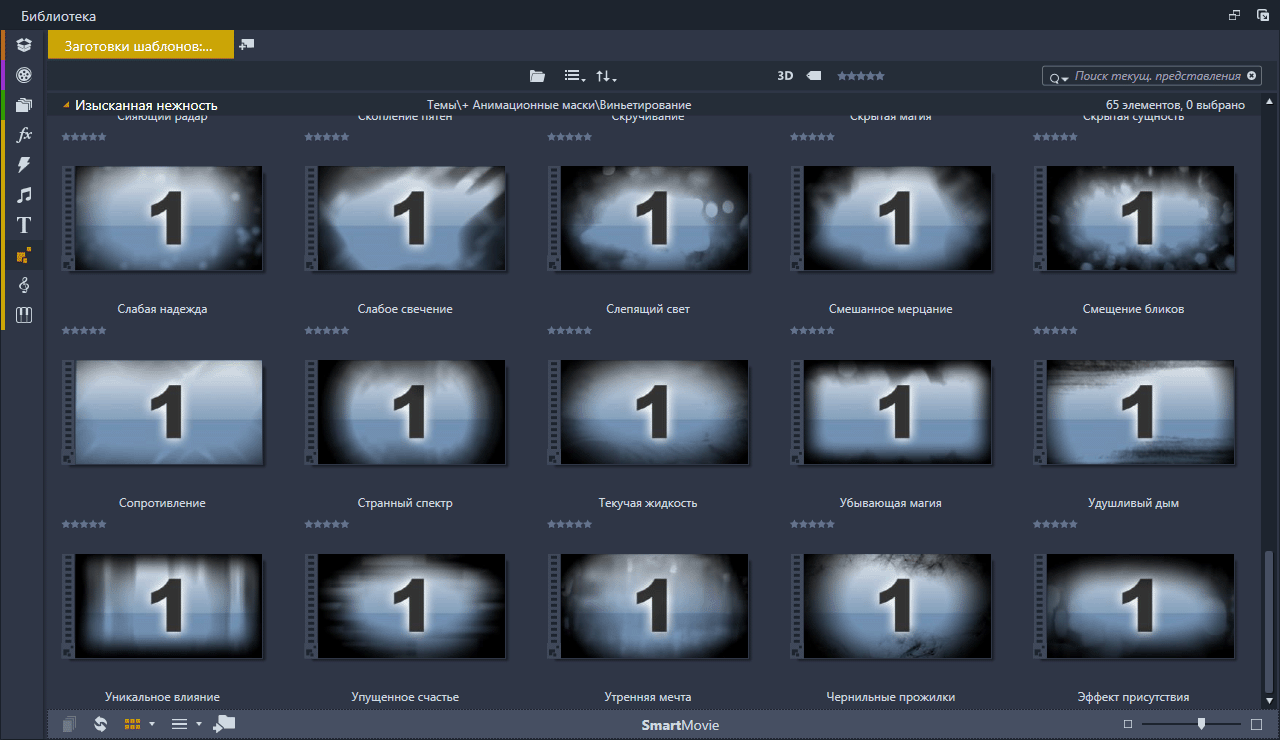 Анимационные маски (Vignettes Soft and Subtle) Набор анимированных масок подключённых в Pinnacle Studio с помощью тем монтажа. Скриншоты