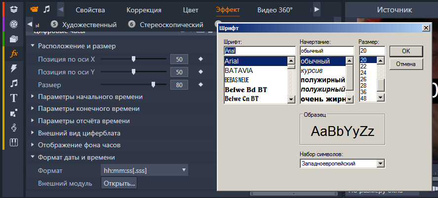 Для изменения параметров шрифта необходимо открыть внешний модуль