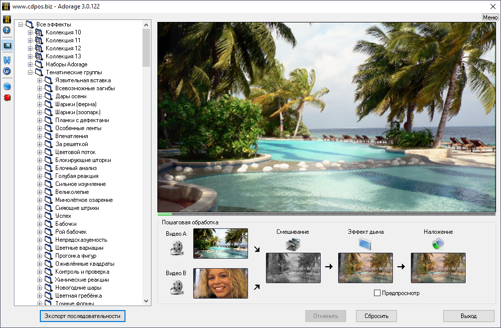 18 переходов Adorage в виде смайликов для фейсбука, с дополнительной возможностью подключения к библиотеке Pinnacle Studio